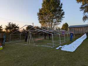 Der Aufbau des Zelts erfolgte am Vorabend durch das „Osterfeuer-/Zeltteam“, beim Abbau nach dem Turnier waren die lokalen Fußballer ebenfalls mit dabei.